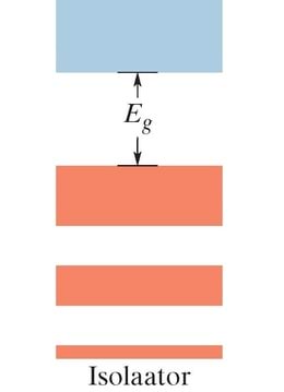 Isolaatoris on elektrone sisaldav kõrgeim tsoon täielikult hõivatud ja vakantsest tsoonist nii laia keelutsooniga eraldatud, et elektronide soojusergastusest üksi ei piisa sellest ülehüppamiseks.