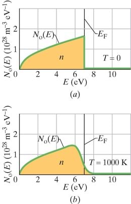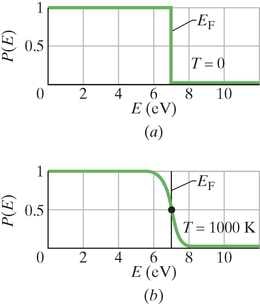 Metalli võime juhtida elektrit sõltub tõenäosusest, millega kättesaadavad vakantsed nivood tegelikult hõivatakse. Siin kerkib küsimus: kui energianivoo on kättesaadav energia korral, siis milline on tõenäosus , et see on tegelikult elektroni poolt hõivatud? Kui , siis teame, et kõikide nivoode jaoks allpool Fermi energiat on , mis tähendab, et nivoo on kindlasti hõivatud. Samuti teame, et korral on kõikide nivoode jaoks Fermi nivoo kohal – need nivood ei ole hõivatud. Joonis 41-7a illustreerib seda situatsiooni.