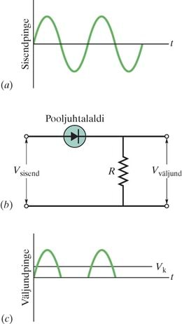 Sisendpinge keskväärtus on joonise 41-14a järgi null, seda pole aga väljundpinge keskväärtus (joonis 41-14c). Seega saab pooljuhtalaldit kasutada alaldusseadmes, mis muundab vahelduvpinget alalispingeks.