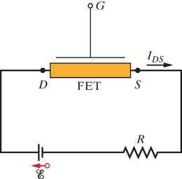 Olgu algul allikas ja -tüüpi alusaine maandatud (nullpotentsiaal), nii et värav „hõljub“, s.t värav ei ole ühendatud välise elektromotoorjõu allikaga. Tekitame potentsiaali neelu ja allika vahel, nii et neel on positiivne. Siis sööstavad elektronid läbi -kanali allikalt neelu suunas ning kokkuleppeline vool , nagu näidatud joonisel 41-20, on neelult allikale.