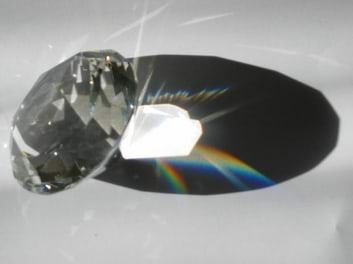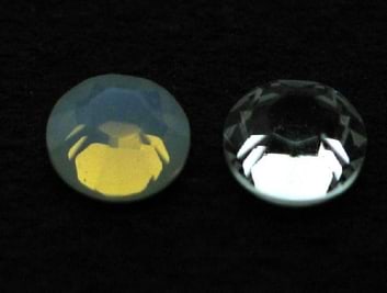 Piltidel on opaalklaasist “Swarowski kivi” (E60.9, vasakul) võrdluses läbipaistvast värvuseta kristallklaasist “kiviga” (E60.8, vasakul).Tugeva valge valgusallika kujutised on kõik mitemkordsed peegeldused, st vastav valgus on läbinud klaasi. Opaalklaas hajutab eelistatult lühemalainelist (sinist) valgust ja vähem pikemalainelist (kollast-punast) valgust, seetõttu omandavad valgusallika kujutised kollaka tooni. Samas tuleb kogu opaalklaasist lihvise ruumalast hajunud sinakat valgust, kristallklaasis on aga hajumine nõrk ja suundades, kus puuduvad väliste heledamate objektide peegeldused, on pilt must (tume).