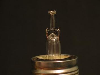 Nanoskoopiliste kvartsklaasi osakestega (E60.11) kaetud sisepinnaga hõõglambi kolb (vasakult) läbivas valguses (luminestsentslambiga valgustatud valge paberi taustal) ja tagasihajunud valguses (luminestsentslambiga eest valgustatud), vt ka D21.2 “Räni paistab läbi”. Värvuste erinevus on tingitud asjaolust, et nanoosakesed hajutavad tugevamini sinist valgust.