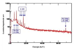 Kuna uranüülklaas sisaldab ebastabiilseid U-238 ja U-235 tuumi (ja nende ebastabiilsid lagusaadusi - tütartuumi, nt Th-234 ja Pa-234m), siis on ta nõrgalt radioaktiivne. Näidise E60.5 kiirgustase jääb siiski foonilähedaseks ja on mõõdetav vaid tundliku gammaspektromeetriga (E. Realo & K. Realo, TÜ Füüsika Instituut, vt. joonis).