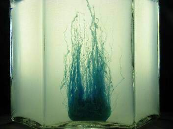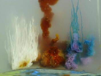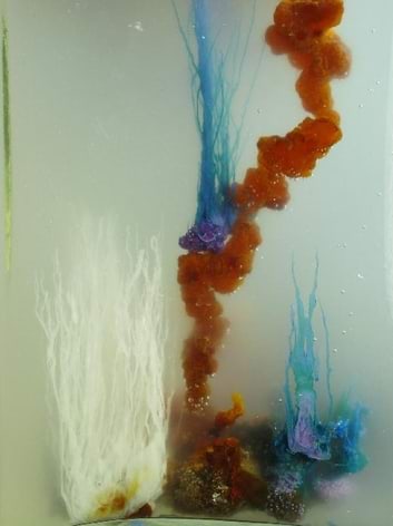 Ülalkujutatud “aed” 12 h pärast, pikimad “kasvud” on jõudnud lahuse pinnani (sügavus 65 mm).
