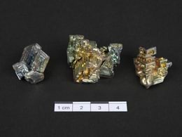 Keemiline element vismut (Bi), monokliinne kristallstruktuur.