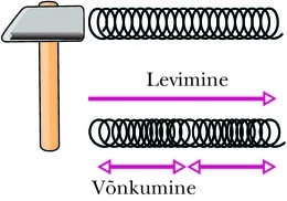 Kui lüüa pika vedru otsa pihta, hakkavad ka selles võnkumised levima. Erinevalt merelainetest toimub võnkumine siin piki levimissuunda. Vedrukeerud kord lähenevad, kord eemalduvad üksteisest. Piki vedru liiguvad edasi kokkusurutud ja hõredaks tõmmatud keerdudega kohad. Tegemist on pikilainega. Pikilaineks nimetatakse lainet, milles võnkumine toimub piki levimissuunda. Pikilainena levib näiteks heli.