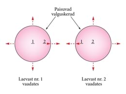 Kujutleme, et kaks kosmoselaeva mööduvad ilmaruumis üksteisest valguse kiirusele väga lähedase kiirusega. Sähvatagu nende lähenemisel laevade vahel ere välklamp (joon. 9-1). Eelmise punkti 1. juhtnööri järgi võib kummagi laeva meeskond uskuda, et ta on kiirusega c paisuva valguskera keskpunktis paigal. Teine laev on muidugi kusagil mujal. Kuid keral saab olla ainult üks keskpunkt. Juhtmõte 2 nõuab, et leiaksime, mil moel kummagi laeva mehed võiksid pidada end paigalpüsivaiks.