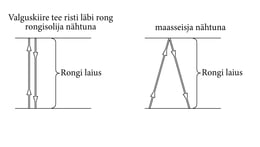 Jooniselt 10-1 on näha, et kummagi vaatleja arvamused lähevad lahku valguse poolt läbitud teepikkuse suhtes. Kui sõitjale tundub, et kiir jõuab lähtepunkti tagasi, siis kõrvalseisja meelest jõuab ta hoopis edasi nihkunud punkti. Seepärast ei tehtudki mõõtmist Maa taustsüsteemis: siis oleks läinud vaja kahte kella. Geomeetriliselt on olukord täpipealt sama kui ujujaga (ptk. 8). Kui rongi laius on , siis kaasasõitva vaatleja meelest läbib kiir vahemiku , maas seisva vaataja arvates aga vahemiku .