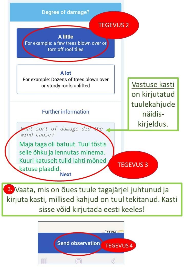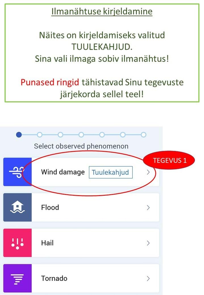 Ülesandes kirjeldame ILMANÄHTUST. Tööjuhendis on kirjeldatud näiteks TUULEKAHJUSID. Sarnasel viisil saab kirjeldada ka teisi ilmanähtusi.