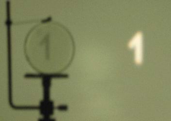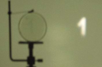 Katse skeem (ülal): mask formeerib kirjutava kiire ruumilise jaotuse (“1”, ekraanil nähtav heledana), mis langedes läbipaistvale fotokroomsele plaadile kutsub esile selle tumenemise. Viimane nõrgendab plaati valgustavat lugevat kiirt ja ekraanile ilmub vastav kujutis (tume “1”). Paremal ülal: ekraan katse alguses, all - katse lõpus.