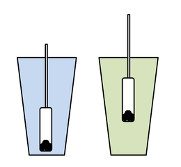 Make a hydrometer from a Pasteur pipette, graduate its scale and measure the density of the unknown liquid. Materials: container with water, container with salt water of known density, container with unknown liquid, Pasteur pipette, shot glass, graph paper, transparent tape, measuring ruler.
