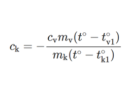 The worksheet of the second variant uses the final formula derived above to calculate the specific heat of the material of the test object.