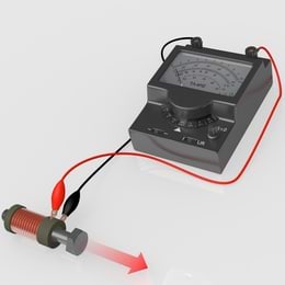 3. Seejärel tuleb ära vahetada püsimagneti polaarsus, muutes nii vastupidiseks ka induktsioonivoolu suuna ja veenduda selles, et mõõdetav induktsioonivool tekib nüüd poldi pooli sisestamisel.