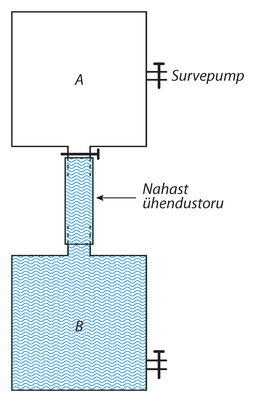 Oma primitiivset survepumpa kasutades suutis Galilei näidata, et nõu kaalub rohkem siis, kui selles oleva õhu rõhku suurendada. Tavalise õhu tiheduse mõõtmiseks mõtles ta välja hulga katseid, millest meie vaatleme lähemalt järgmist. Nõud ja (joonis 4) on ühendatud nahktoruga. Nõus on õhk suure rõhu all, nõus on vesi. Nõul on kraan, mille kaudu vesi võib välja voolata. Katse algul kaalutakse kokkusurutud õhku täis nõu . Siis ühendatakse nõu nõuga ja avatakse kraan. Lisarõhk surub osa vett -st välja, mis kogutakse kokku ja kaalutakse. Seejärel kaalutakse uuesti nõu .