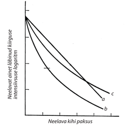 Barkla täheldas seost materjali paksuse ja seda läbinud röntgenikiirte kimbu intensiivsuse vahel. Kui kiirgus oleks olnud homogeenne, oleks selle intensiivsus pidanud vähenema proportsionaalselt ainekihi paksenemisega ja intensiivsuse logaritmi sõltuvust ainekihi paksusest oleks esitanud graafikul sirge (joon a joonisel 52). Kui kiirgus oleks olnud mittehomogeenne, pidanuksid kiirguse rohkem neelduvad komponendid järk-järgult välja filtreeruma, neelamis-tunnusjoon oleks muutunud ja graafik ei oleks olnud enam sirge (joon b joonisel 52).