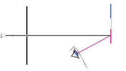 Proovime äsja tehtud katse teha läbi ka sarnasel viisil, mil käsitlesime esimeses tunnis nägemise olemusega tutvumist - kasutame valgusallikana sedasama üksikut LED-lampi, silmaläätsena katsekomplekti läätse ja võrkkestana valget ekraani. Vaatame, kas näeme sarnast pilti.