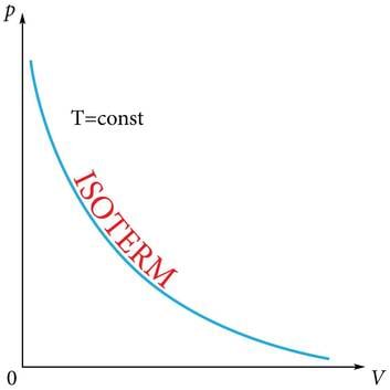 Isotermilise protsessi käigus ei muutu temperatuur ja ideaalse gaasi rõhk on pöördvõrdeline ruumalaga: