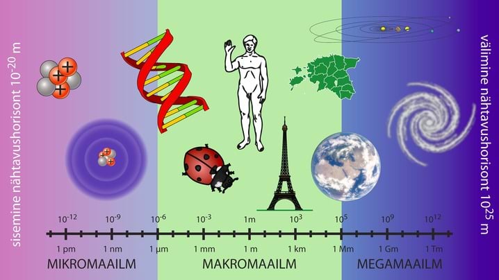 füüsika tegevusala hõlmab kogu loodusobjektide mõõtmete skaalat. Füüsika tegeleb kõige suuremate ja ka kõige väiksemate loodusobjektidega.