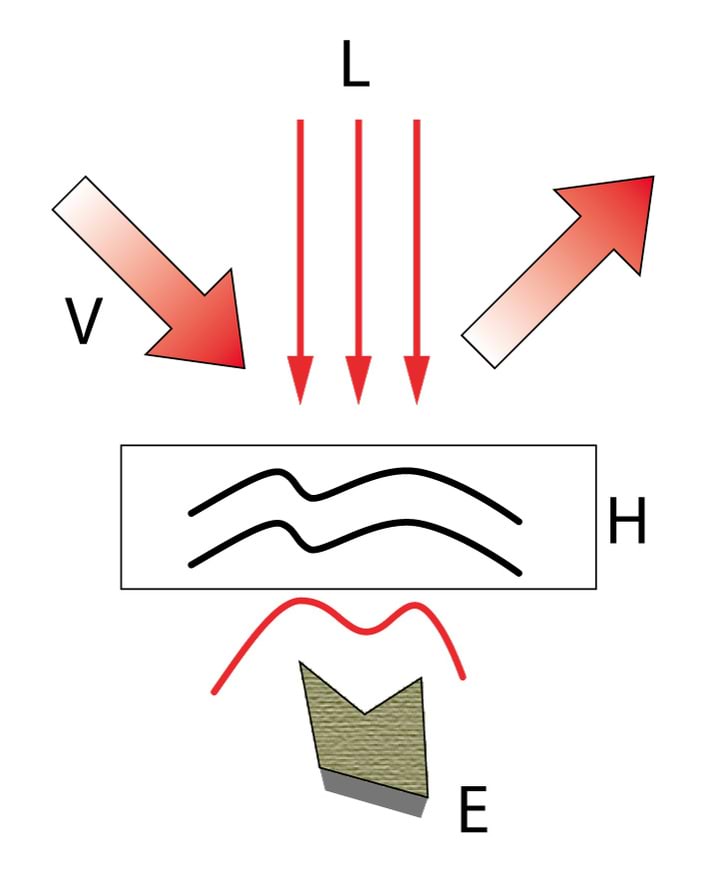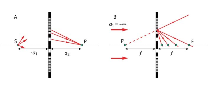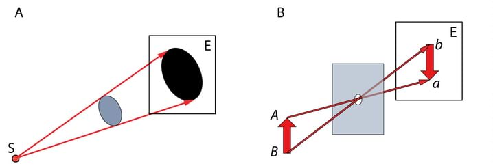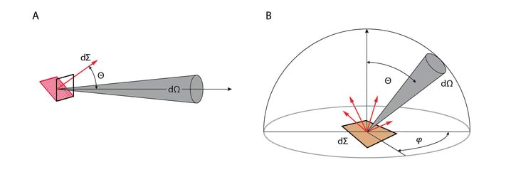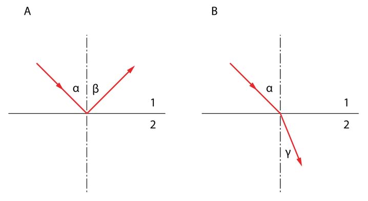Enamikel juhtumitel on 3-mõõtmelised nähtused, Jn 1.2A, esitatud 2- mõõtmeliste lõigete, Jn 1.2.B, või projektsioonidena, seega horisontaalne joon sel joonisel on lahutuspinna lõikejoon langemistasandiga. Kui on võimalus mitmeti mõistmiseks, on joonisele lisatud ka koordinaattelgede orientatsioon. Joonistel kujutatakse valguse levikusuunda kiirena.