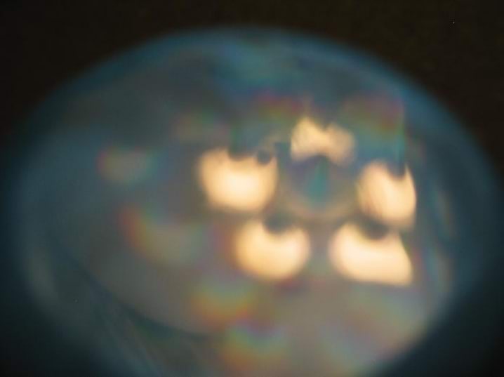 Vikerkaarevärvilised laigud heledamate kõrval on D86.7 laelampide difraktsioonkordused. See pilt on saadud, surudes Thinking Putty pinna vastu difraktsioonkilet. Thinking Putty pind kopeerib reljeefse võre struktuuri piisava täpsusega difrageeriva peegelstruktuuri tekkeks! Tõsi, taoline “puttyvõre” pole? eriti pikaealine - pindpinevusjõudude toimel relakseerub ta toatemperatuuril kümnekonna sekundiga.