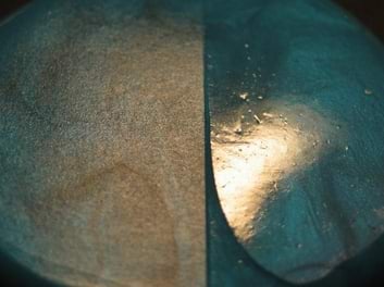 Vasakul fotol on poole Thinking Putty pinna vastu surutud paber, mis annab tugevalt hajutava faktuuriga pinna, poole vastu klaas, mis annab peegelpinna. Kümne minuti pärast on ka paberiga mateeritud pind pindpinevusjõudude toimel silestunud peegeldavaks.