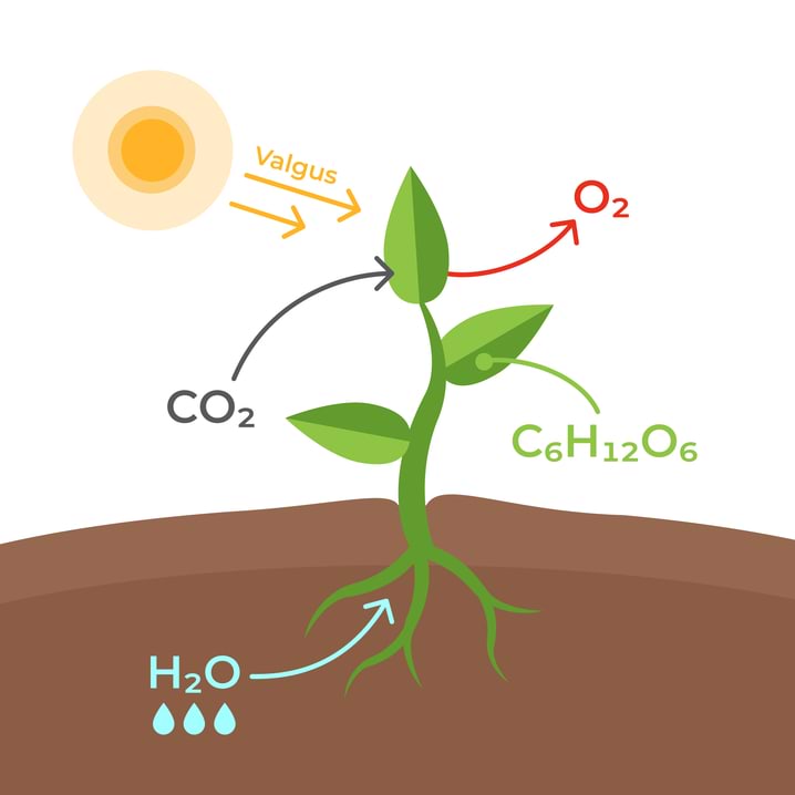 Fotosüntees, nagu me seda 7. klassis õpime, on see, kui taimed kasutavad valgust veest ja süsihappegaasist glükoosi tootmiseks. Lisaks eraldub reaktsiooni käigus hapnik: