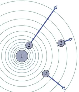 Tsentraalsümmeetriline jõuväli.Inimese igapäevaelu mõjutavad kõige enam gravitatsiooniväli ning elektromagnetväli. Mõlema välja potentsiaal ehk "mõjuvõim" sõltub kauguse pöördruudust, mis mõõdetud välja tekkepunktist. Pöörd-ruutsõltuvus tähendab eelkõige, et välja mõjul on lühike ulatus. Kui minna allikast kahe ühiku võrra kaugemale, nõrgeneb jõud neli korda. Ometi ei tundu me keha toolilt püsti tõustes kergem. Seda sellepärast, et maakera on võrreldes inimesega väga suur. Ühe kilomeetri kõrgusel tõmbab Maa 80 kg raskust inimest vaid 0,03 % võrra vähem kui merepinnal.