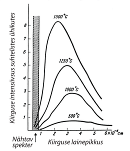 Üks seletamatutest nähtustest on keha värvuse muutumine kuumutamisel. Keha, mille temperatuur on kõrgem ümbritseva keskkonna temperatuurist, hakkab kiirgama rohkem energiat, kui ta seda saab, ja me tunneme, et keha on soe. Temperatuuril umbes hakkab keha punaselt hõõguma. Kui temperatuur veelgi tõuseb, siis kiiratav spektririba laieneb ja temperatuuril hakkab keha hõõguma valkjalt. Miks on see nii?