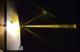 Võtame nüüd kasutusele spetsiaalselt spektri uurimise katseteks mõeldud katsekomplekti difraktsioonivõre ja jätame ka läätse mängust välja. Kuna spetsiaalne võre on „tugevam," st selle difraktsioonivõre ühe millimeetri kohta on umbes neli korda rohkem jooni, eraldub spekter paremini.