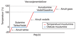 Vaatame üle video, millega juba eelnevalt tutvunud oleme. Paneme tähele, kuidas vee temperatuur püsib aurustumisel kraadi juures.