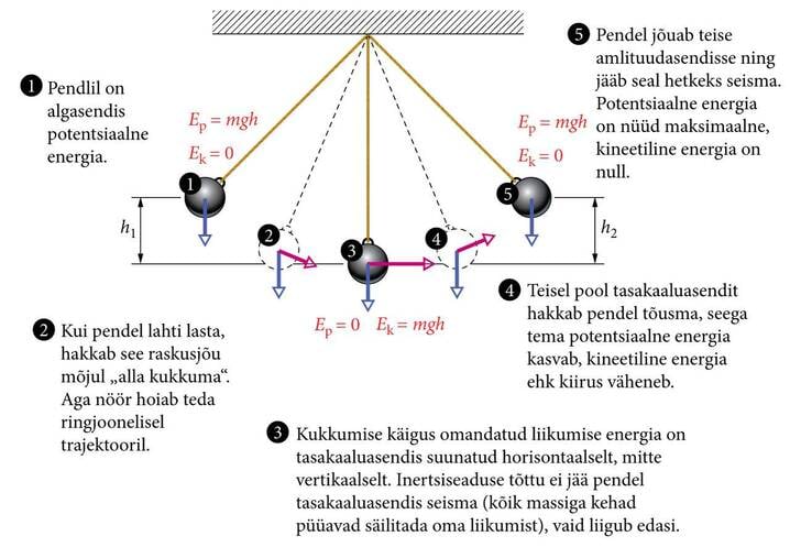 Pendli liikumine on hea näide sellest, kuidas mehaanilisel liikumisel kineetiline ja potentsiaalne energia teineteiseks muunduvad. Seda protsessi kirjeldab alljärgnev joonis.
