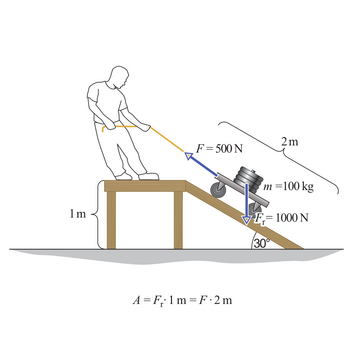 Me kasutame kahemeetrist kangi. Kivi on kangi toetuspunktist 40 cm kaugusel ning meie käsi on toetuspunktist 160 cm kaugusel. Et kangi kiviga ots tõuseks 20 cm võrra, peab kangi teist otsa alla vajutama 80 cm võrra – meie käsi on kangi toetuspunktist neli korda kaugemal, seega peab meie käsi läbima ka neli korda pikema tee. Töö, mida peame kivi tõstmiseks tegema, on 196 J. Seega teades, kui pika tee meie käsi läbib, saame leida jõu, millega peame kangi vajutama.