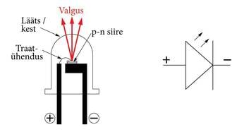 LEDis muutub elektrivoolu energia p-n siirdel erimärgiliste laengute