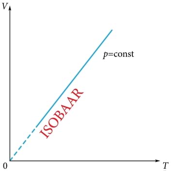 Isobaarilise protsessi käigus ei muutu rõhk ja ideaalse gaasi ruumala on võrdeline absoluutse temperatuuriga: