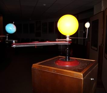 | Füüsika üks eesmärke on luua loodusest kõige üldisemaid mudeleid. Pildil on Maa, Kuu, Merkuuri ja Päikse planetaarmudel, mis annab edasi olulisema informatsiooni nimetatud planeetide liikumise kohta. | Füüsikaliste objektide lihtsustatud mudeleid leiab näiteks arvutisimulatsioonides. Selles simulatsioonis jäetakse arvestamata terve hulk pendli liikumist mõjutavaid faktoreid. |