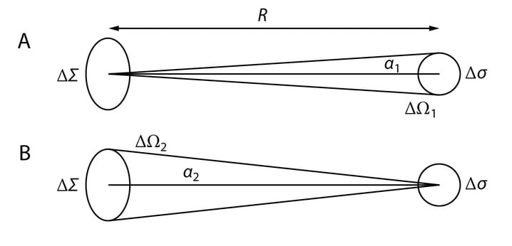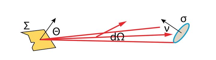 Olgu kihis dz paiknevate 2-nivooliste aatomite hõived ja ning langev valgus kiiritustihedusega levib väikesesse ruuminurka dΩ, Jn 11.9A. Vabakiirguse panuse otsesuunas levivasse valgusse võib lugeda tühiseks, sest dΩ/4π≪1.