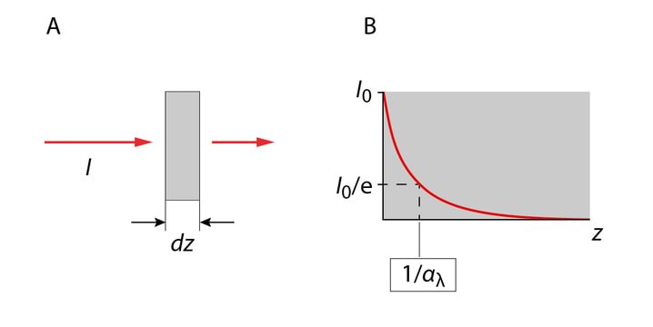 Eelnevalt, vt 4.8, saime, et valguse intensiivsus sõltub eksponentsiaalselt läbitava ainekihi paksusest