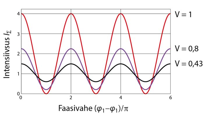 Rakendame seda postulaati Youngi interferentsikatse tulemuste interpreteerimiseks. Kui footonite arv on suur , siis saame ekraanil laineoptikale vastava intensiivsuse jaotuse, vt Jn 5.6.