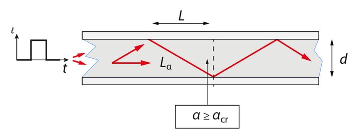 Kui on täidetud tingimus , siis tõenäosusega footon neeldub, st aatom siirdub seisundisse . Aatomi eluiga selles seisundis, tema siirdumine seisundisse võib toimuda nii kiirguslike kui ka mittekiirguslike protsesside tulemusena. Kiirguslikul üleminekul kiirgab aatom aja möödudes juhuslikus suunas sama sagedusega footoni. Sellist kiirgusmehhanismi nimetatakse resonantskiirguseks. Kiiratud footon neelatakse naaberaatomi poolt, mis omakorda kiirgab sama sagedusega ning juhuslikus suunas leviva footoni jne. Mittekiirgusliku ülemineku näiteks on mitteelastne põrge naaberaatomiga, mille tulemusena seisundisse salvestatud energia transformeeritakse kulgeva liikumise energiaks ja esialgses suunas leviva valguse kiiritustihedus väheneb.